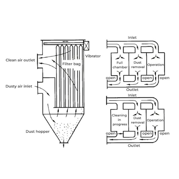 A zsákos szűrő porgyűjtő egy sor szövetszűrőzsákot használ a részecskék eltávolítására a gázáramból. Ez a típusú porgyűjtő ideális olyan iparágakban, ahol finom, száraz, nem szálas por keletkezik. A porral terhelt gáz bejut a kollektorba és áthalad a szűrőzsákokon, ahol a nagyobb részecskék a garat alján ülepednek, míg a finomabb részecskéket a szűrőszövet fogja fel. A gázt ezután megtisztítják, biztosítva, hogy a kibocsátás megfeleljen a környezetvédelmi előírásoknak.